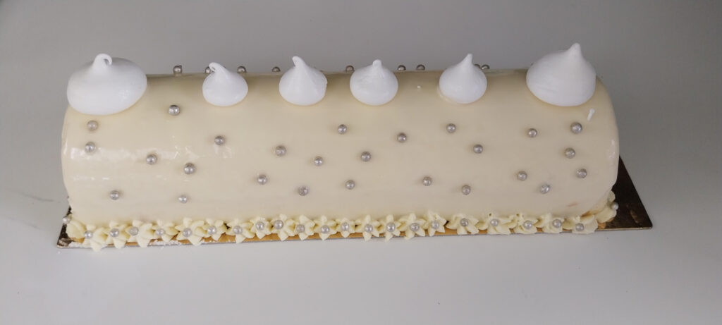 The meringues are to be placed at the last moment, to prevent them from melting due to the humidity of the glaze or your fridge
